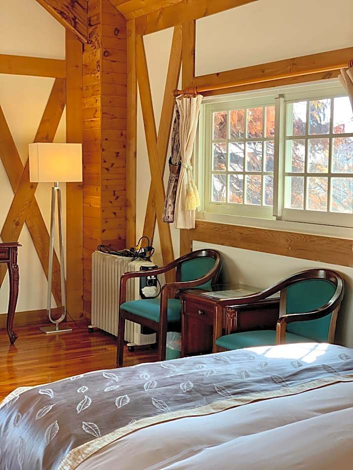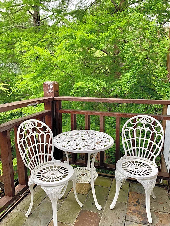 This double room is located in a separate building from the lobby. It has a queen-sized bed and an indoor balcony facing Qilai mountains. You can find a thermo flask and tea/coffee bags in room. Water dispenser can be found in the hallway.